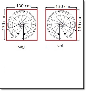 130 cm. çapında olan bu merdiven için tavanda açılacak boşluk; en az 140cm x 140cm kare olmalı.