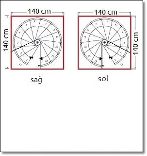 140 cm. çapında olan bu merdiven için tavanda açılacak boşluk; en az 150cm x 150cm kare olmalı.