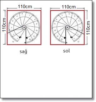 110 cm. çapında olan bu merdiven için tavanda açılacak boşluk; en az 120cm x 120cm olmalı.